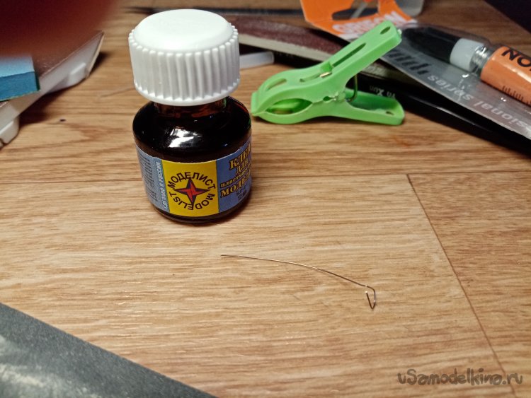 Из алюминиевой проволоки быстро согнул подставку для тюбика клея. В перерывах в работе устанавливаю его в вертикальное расположение. Остатки клея стекают из носика, и значительно уменьшается вероятность его застывания.