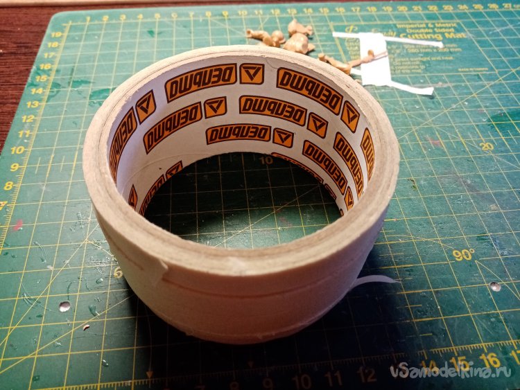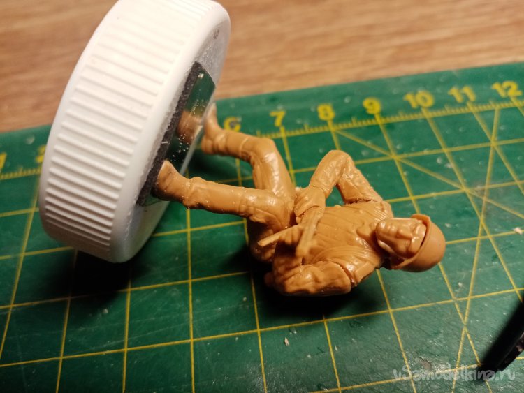 Для удобства работы закрепил фигурку на крышке при помощи двойного скотча.