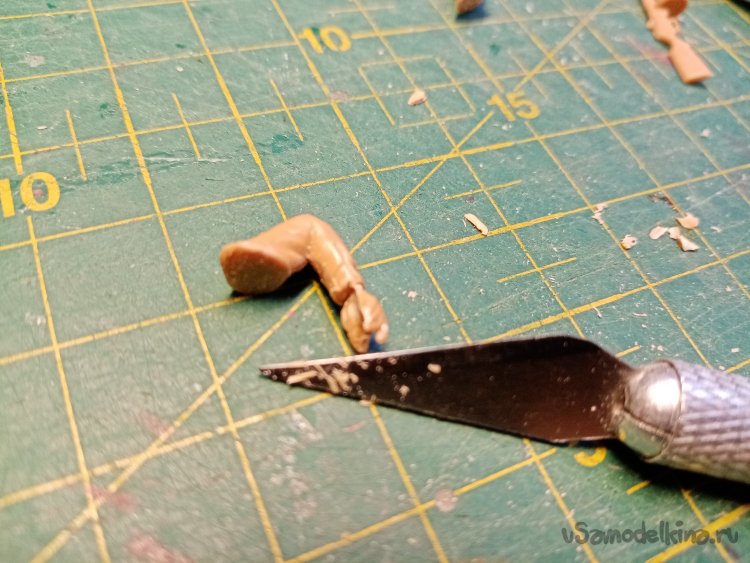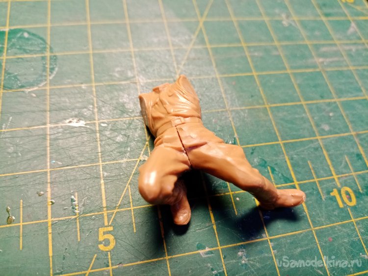 Очищаю от облоя руки при помощи ножа для творчества.