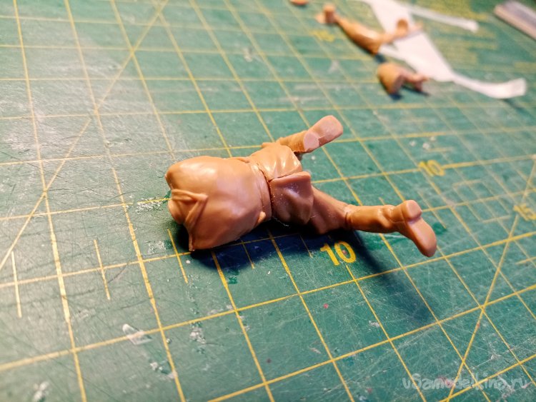 Торс и ноги соединены. Выжидаю некоторое время. Иногда прижимая детали, добиваюсь хорошего соединения, без дефектов.