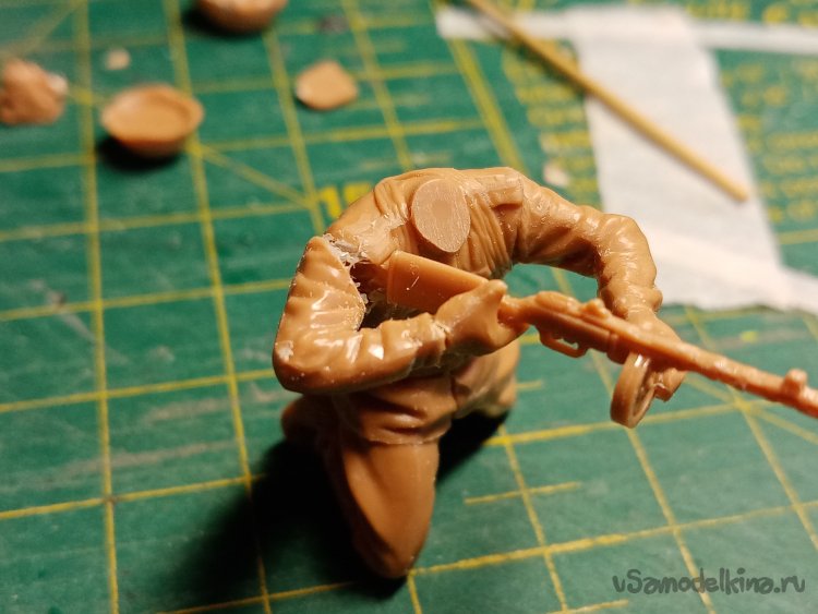 Шпаклевку наношу на нужные места при помощи зубочистки. Немного на пулеметчика.