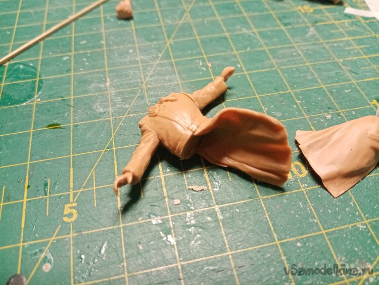 Начинаю подгонять и приклеивать полы шинели к торсу.