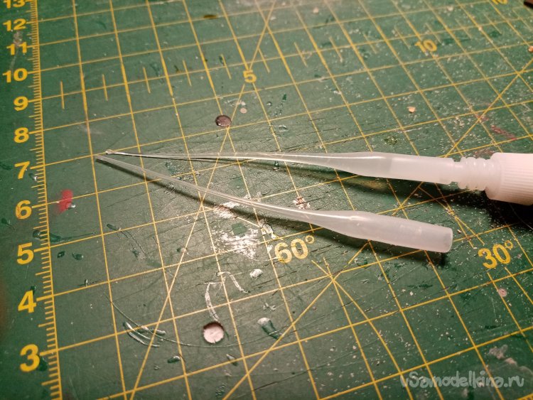 Склеивать буду в некоторых местах при помощи циакрина. Надеваю тонкую трубочку для клея на носик.