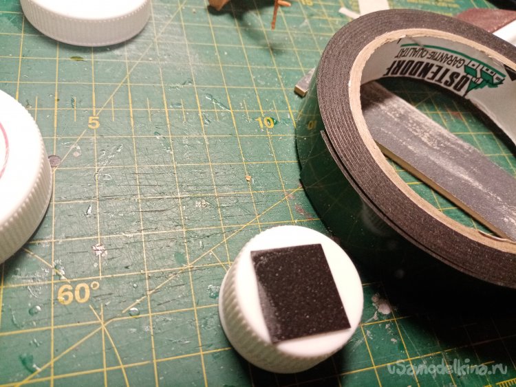 Фигурку устанавливаю на крышку и закрепляю при помощи двойного скотча.
