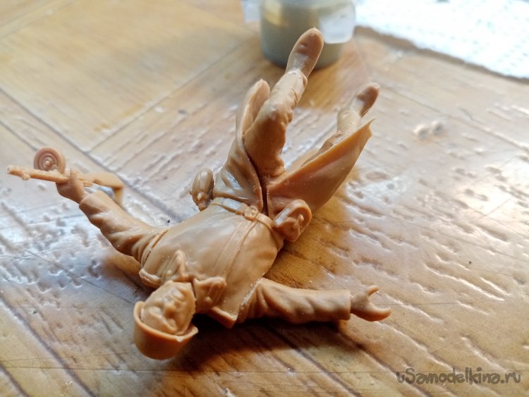 Вторая фигурка, прыгающий пулеметчик с плащ-палаткой на плечах.