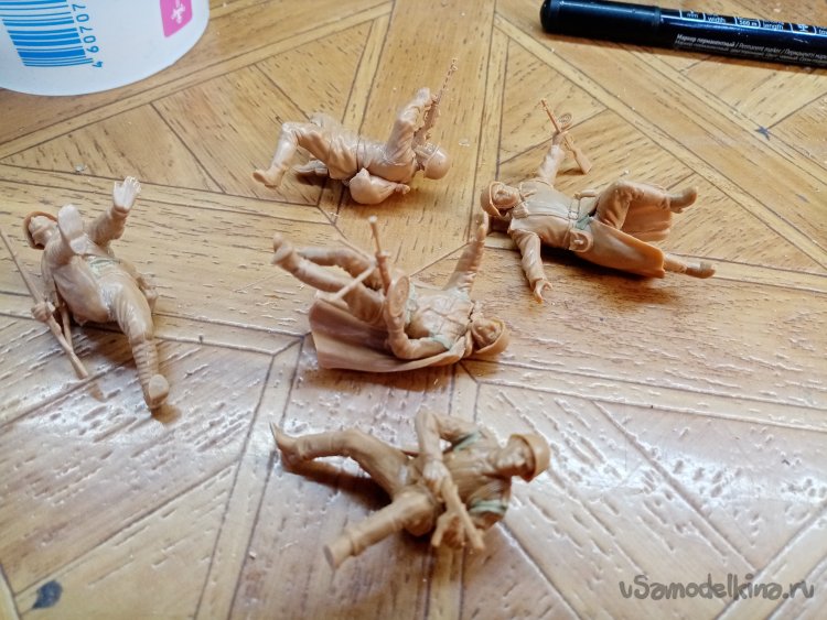 В некоторых случаях буду использовать клей предназначенный для сборки пластиковых моделей. Данный вариант не клеит, а сваривает детали растворяя немного пластика. В некоторых случаях этот вариант склеивания не заменим. Когда нужно установить фигурки в нужных позах, поскольку клей застывает не мгновенно. Есть возможность подвигать детали. Корректировать позу и только потто оставить в нужной для окончательного отвердевания линии склейки. Наношу клей при помощи тонких проволочек или щепочек из бамбука.