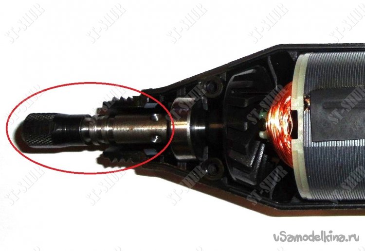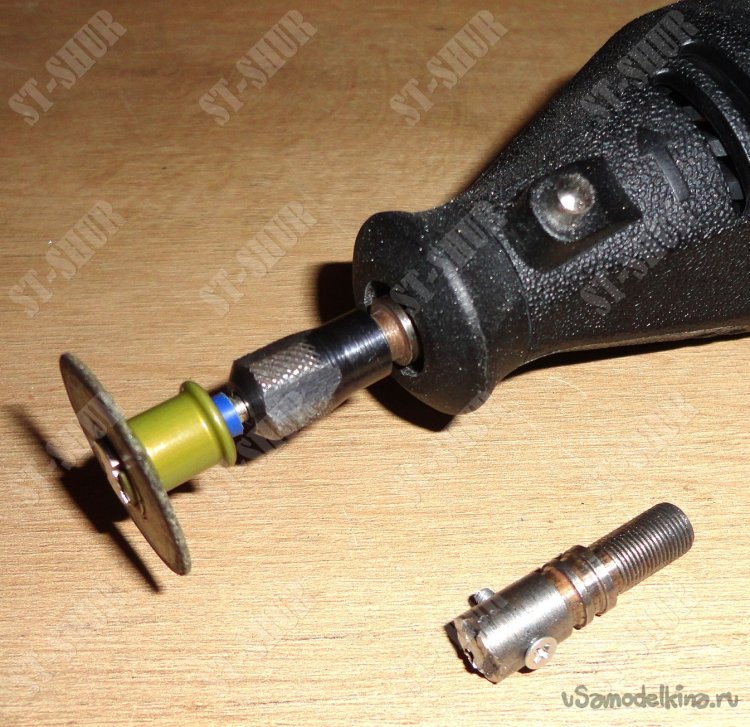 В качестве основы для конструкции использовал концевую насадку от сгоревшего ротора МФИ «DREMEL», которая позволяет использовать как кулачковый, так и цанговый фирменные патроны.