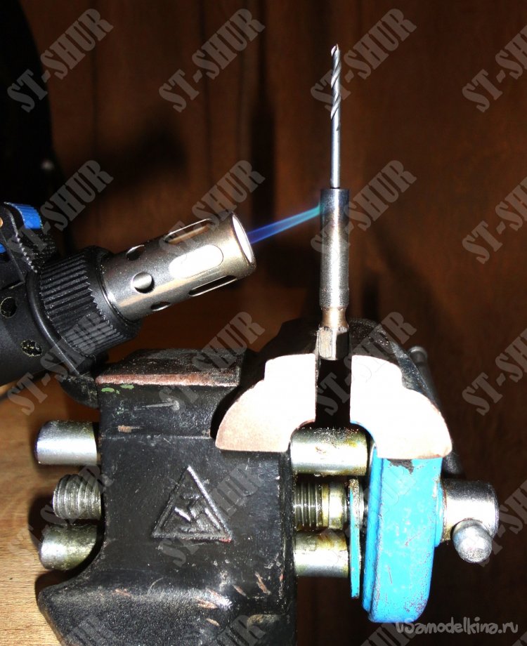 Далее с помощью газового паяльника и пассатижей из хвостовиков были извлечены сверла.