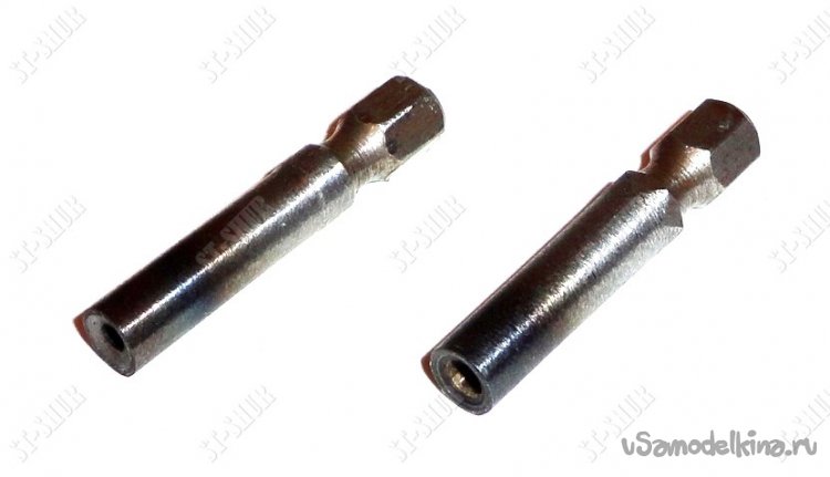 Для изготовления переходных муфт были использованы шестигранные хвостовики от (убитых) сверл 2мм и 3мм. Хвостовики были обточены до диаметра 6мм (с периодическим замером результата), с помощью точильно-шлифовального станка и шуруповерта. При этом вращение «шурика» установлено в обратную сторону, т.е. навстречу вращению шлифовального круга.