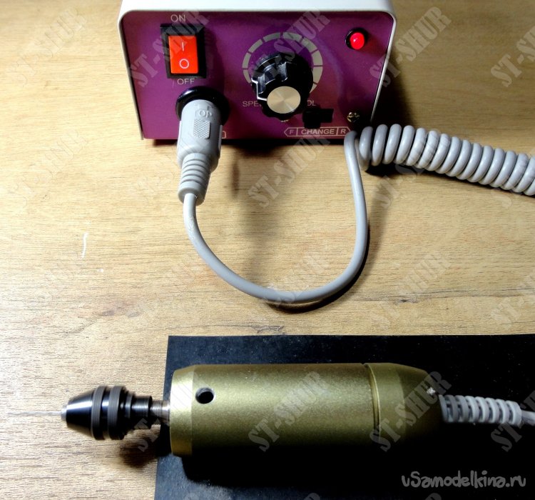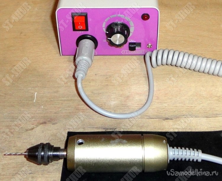 При использовании маникюрного набора сверление остаётся достаточно комфортным с использованием сверл диаметром до 1мм (в связи с относительно маломощным установленным электродвигателем). Имеются минимальные вибрации, но при этом центровка сверла практически не нарушается.