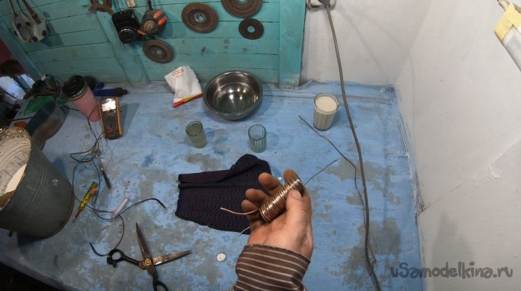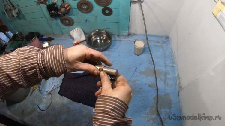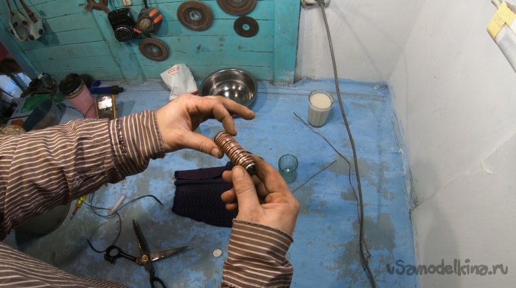 Берем медную проволоку и наматываем ее на какую-то трубку, кстати, можно просто найти медную трубку для сердечника. Это будет пассивный элемент батарейки, то есть сердечник.