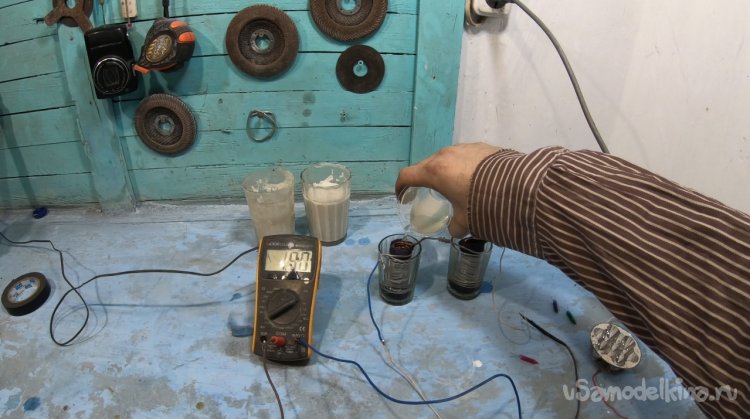 Батарейка получилась получше, чем просто гальваника на соли или кислоте, она выдает более высокое напряжение, но есть недостаток – просадка по току, хотя ток и напряжение быстро восстанавливается .В целом такая самоделка напоминает самозарядный электролитический конденсатор, мне было интересно, может кому-то тоже дам тему для размышлений.
