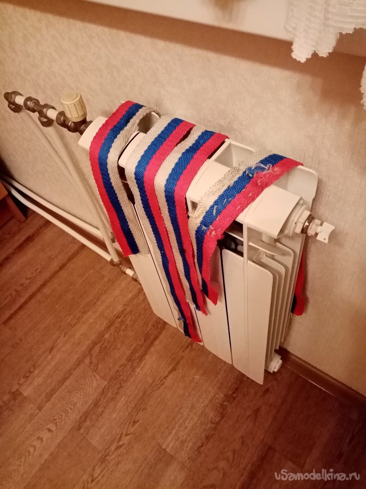 Немного постирав ремень с русской символикой, бросил обрезки сушиться на батарее.