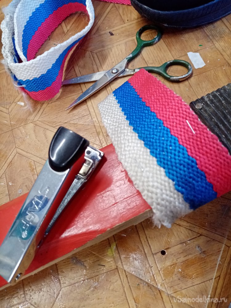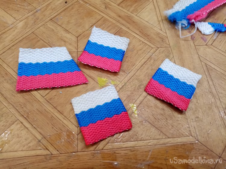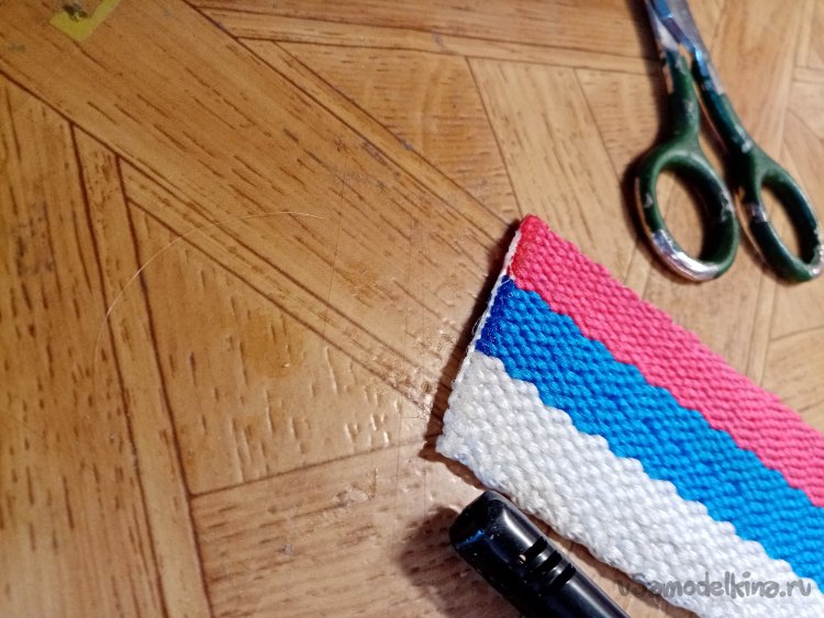 Из остатков ремня нарезал немного брелков с российским триколором.