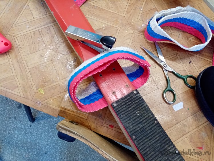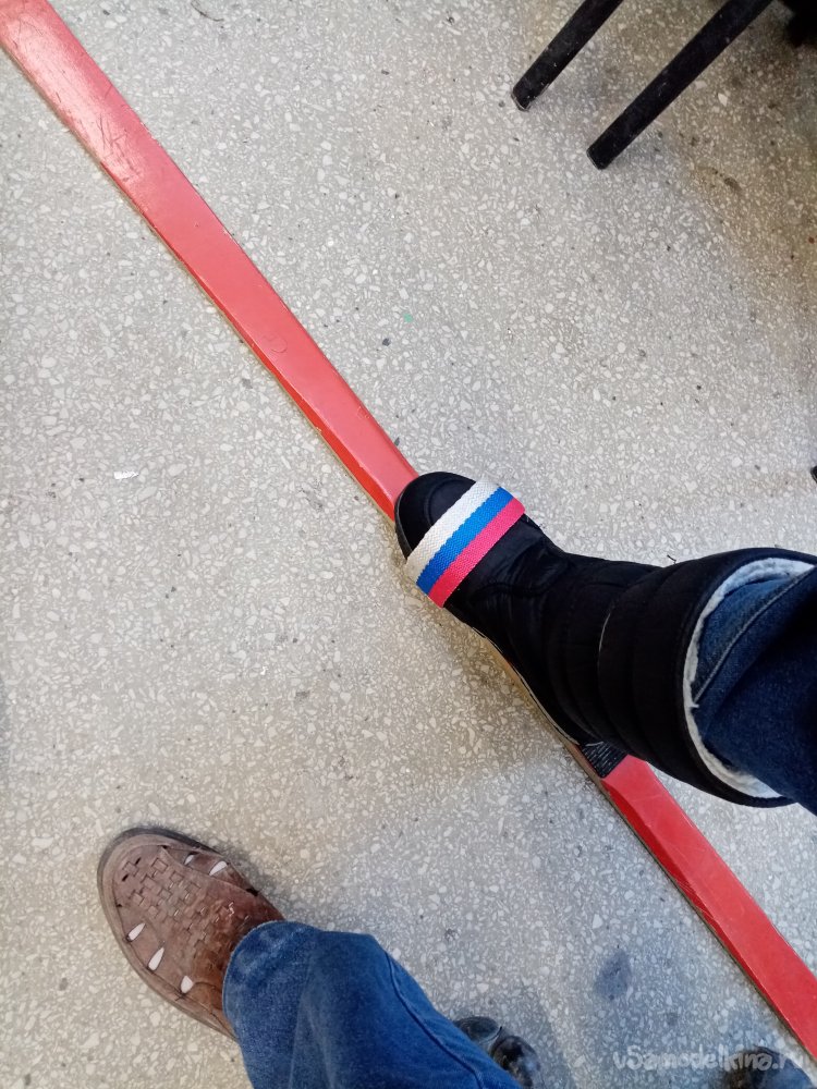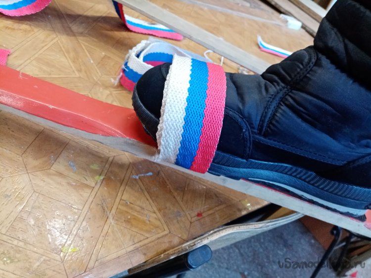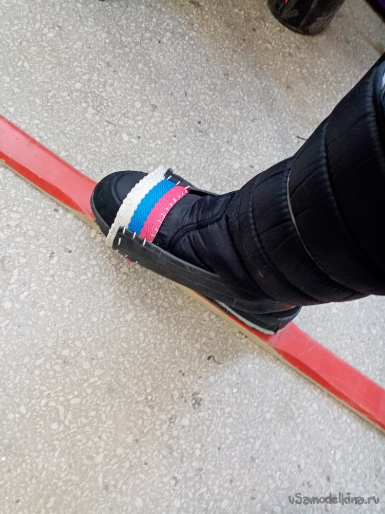 Отрезаю нужную длину и пришиваю к ремням крепления. В таком случае нога более-менее закреплена к лыже и не так болтается.