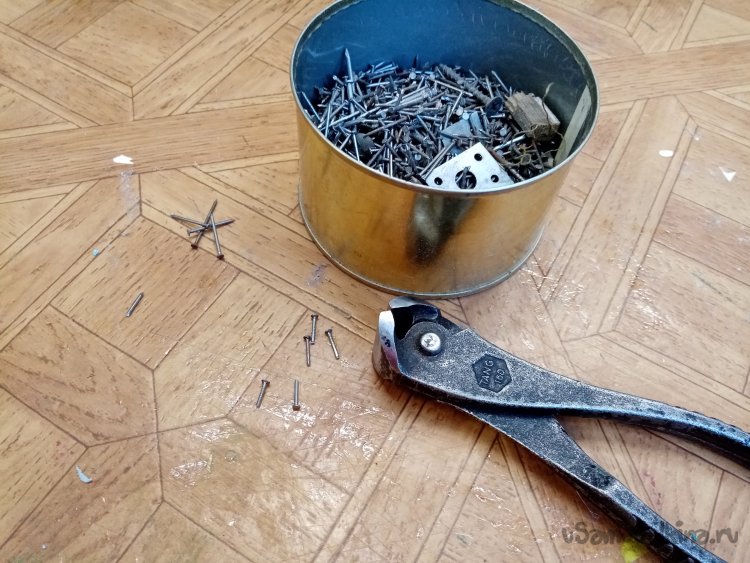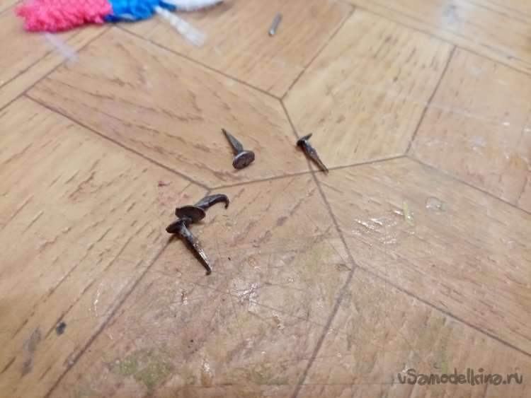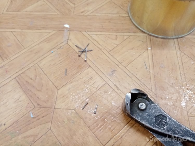 В наличие есть маленькие гвозди но значительной длины. Откусываю кончики при помощи могучих советских кусачек.