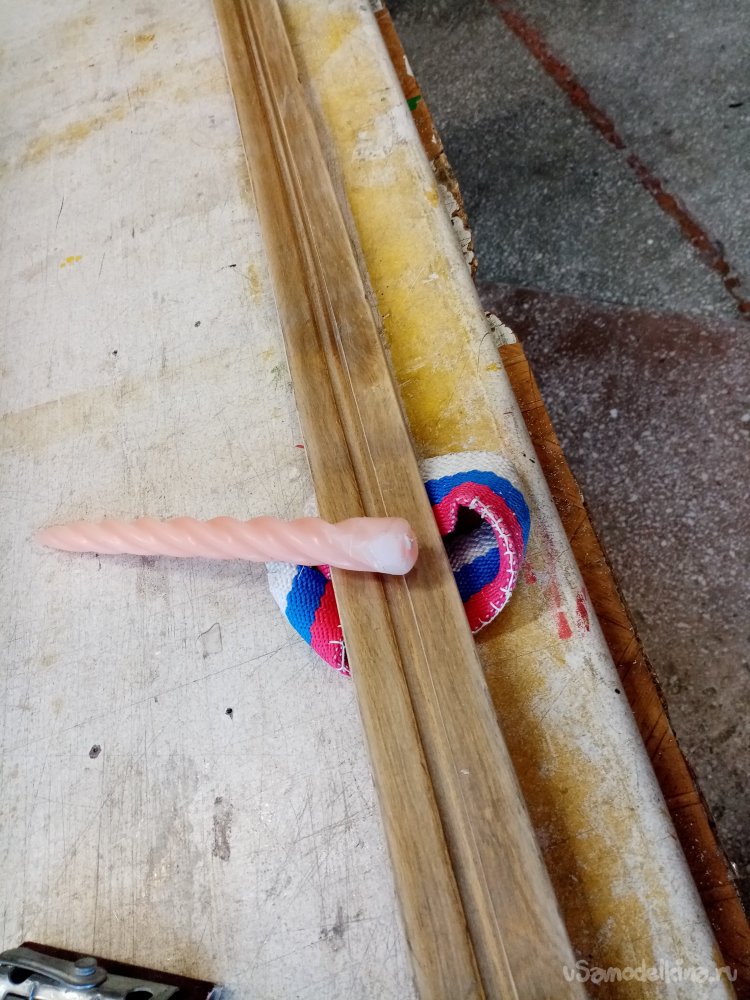 Затем натираю скользящую поверхность свечкой и разгоняю смазку при помощи пенопластового бруска.