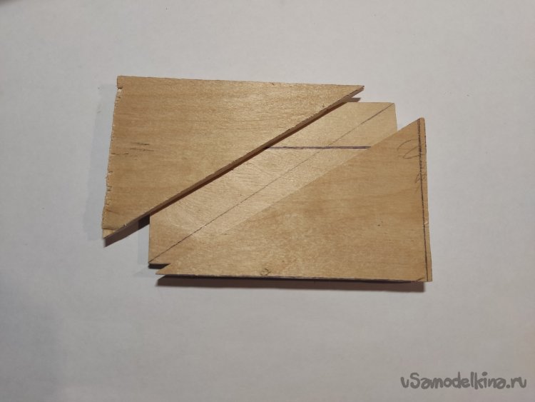 - Два треугольника, вместе образующих прямоугольник с размерами 140-100-6 мм. На эти треугольники и будут крепиться наши стенки коробочки.