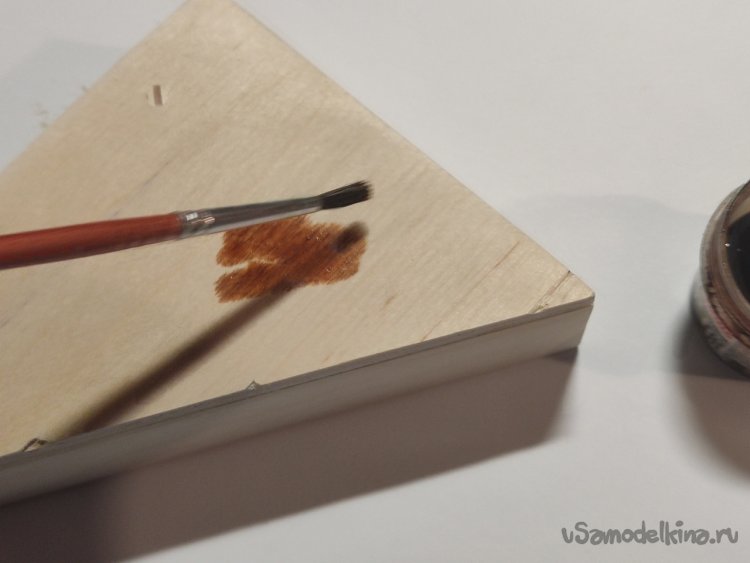 10) при помощи кисти покроем их морилкой оттенка мокко, тут главное не переборщить. Дело в том , что как только покроешь изделие оно смотрится вроде бы хорошо, но когда морилка высыхает , оттенок меняется , поэтому нужно совершать эту процедуру не спеша и аккуратно.