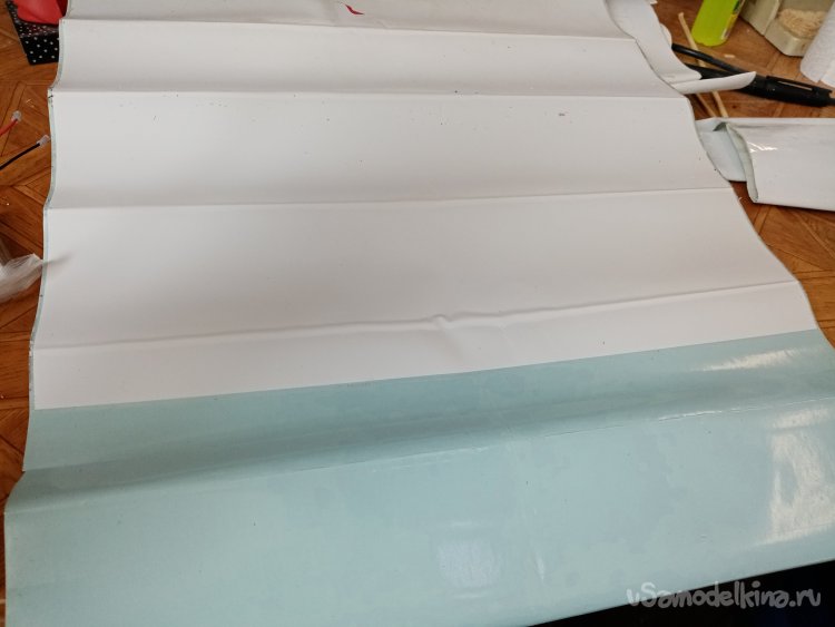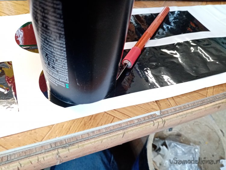 Первое движение на пути будущего великолепия. Режу на полосы при помощи ножа для творчества и металлической линейки рекламную пленку ОРАКАЛ.
