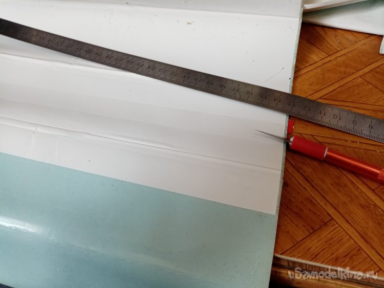 Вторая полоска прошла тоже неудачно прямо на выступающую часть крепления качалки элерона. Немного почиркав ножичком обогнул это препятствие.