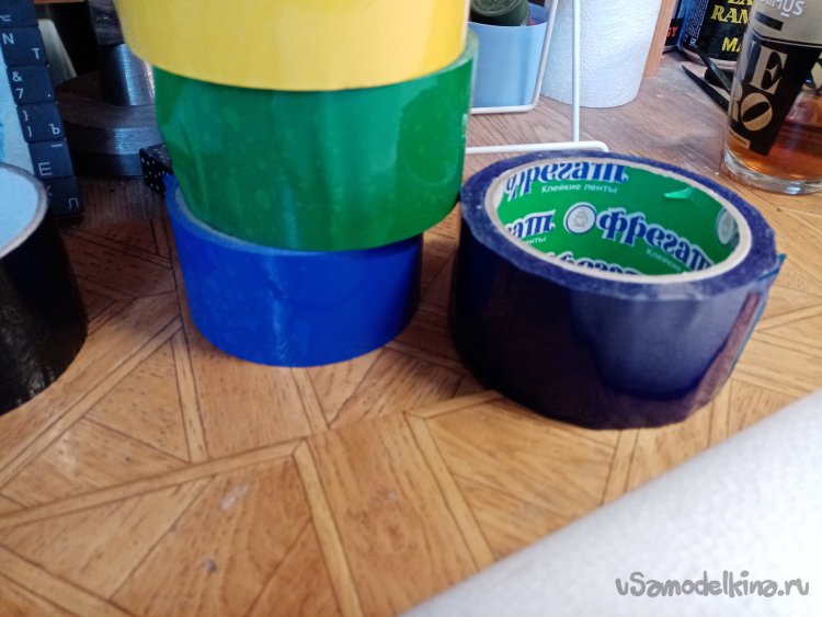 Поэтому буду «делать красиво». На этот раз при помощи упаковочного скотча разного цвета и оттенка.