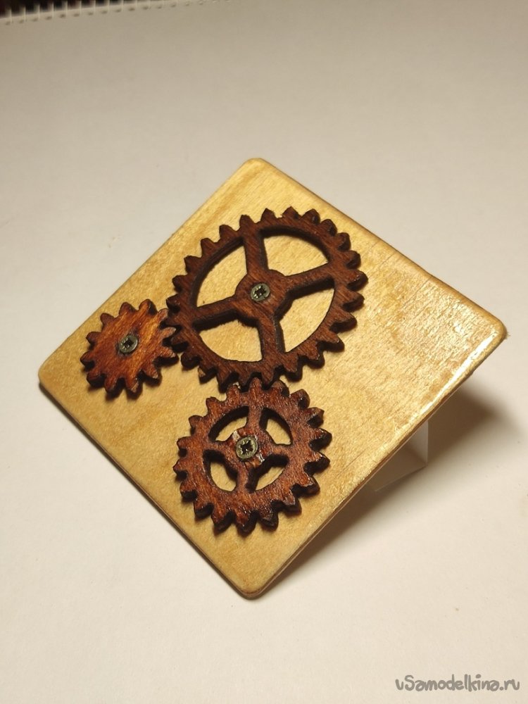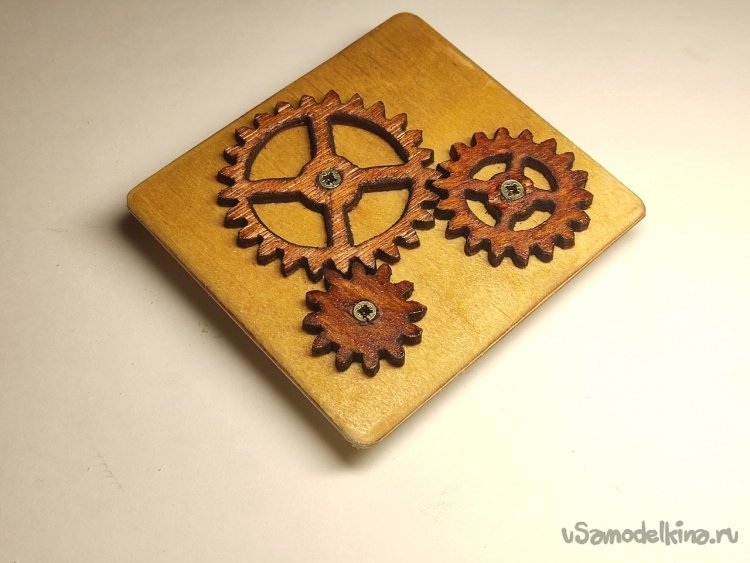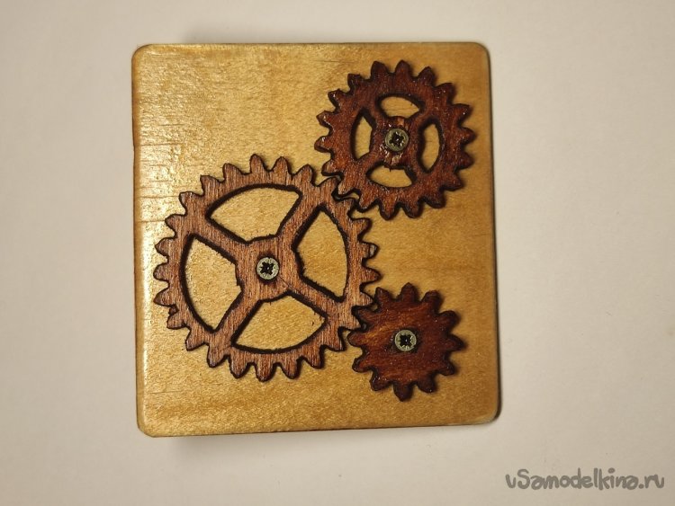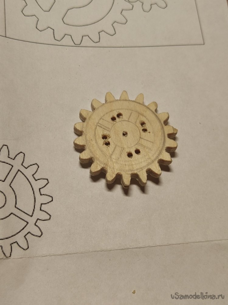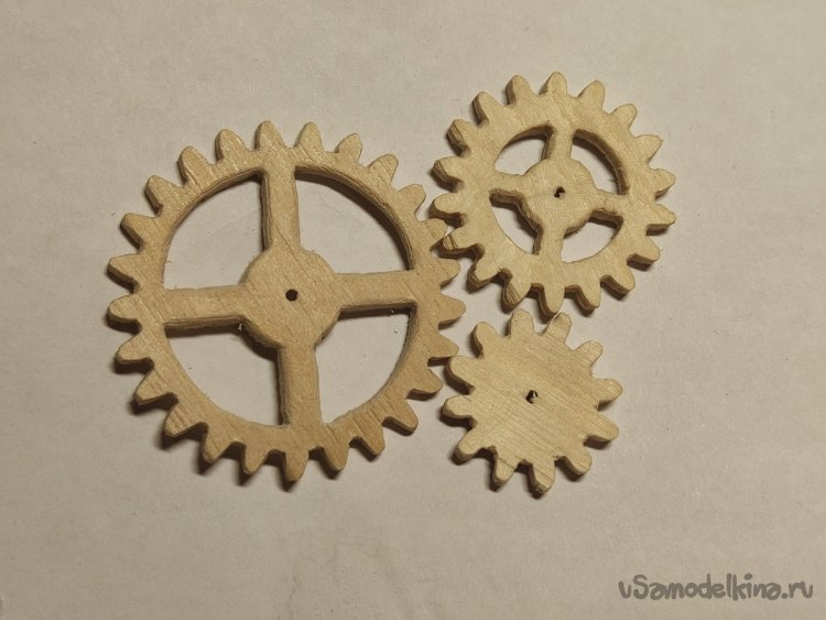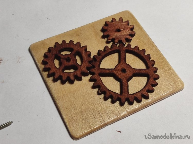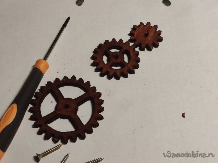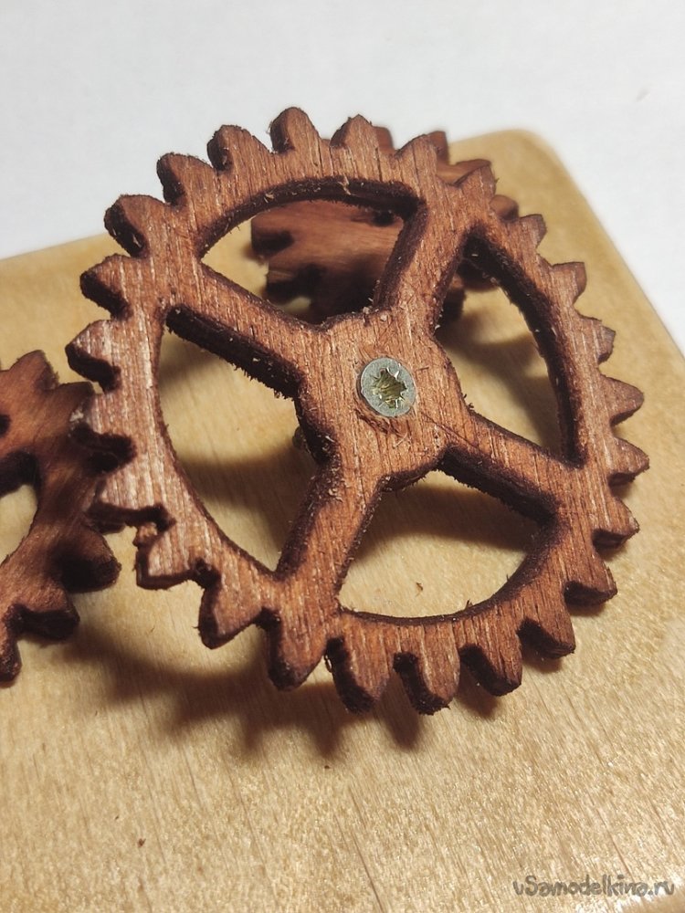 13. Шестерни выпилины и обработаны, почти финишная прямая! Покрываем их морилкой.
