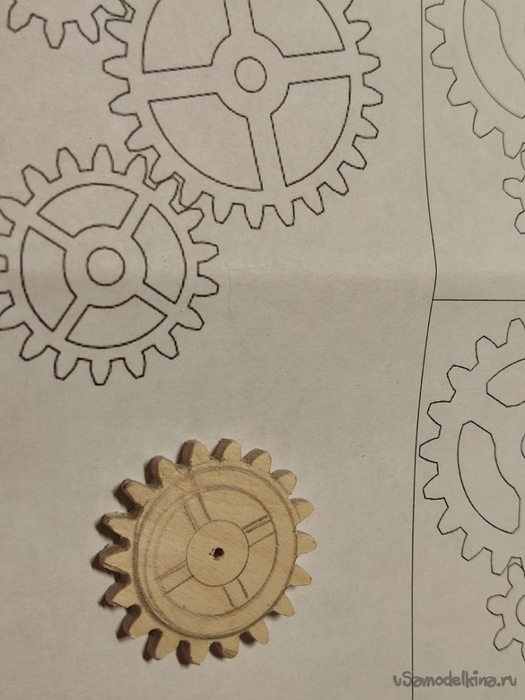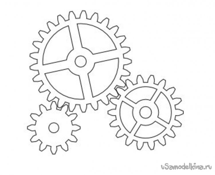 Перед реализацией задумки в жизнь, определимся с внешним видом изделия. Для создания деревянных шестерёнок воспользуемся шаблоном, который не сложно найти в интернете, можно начертить и самому, но это долго и времязатратно.