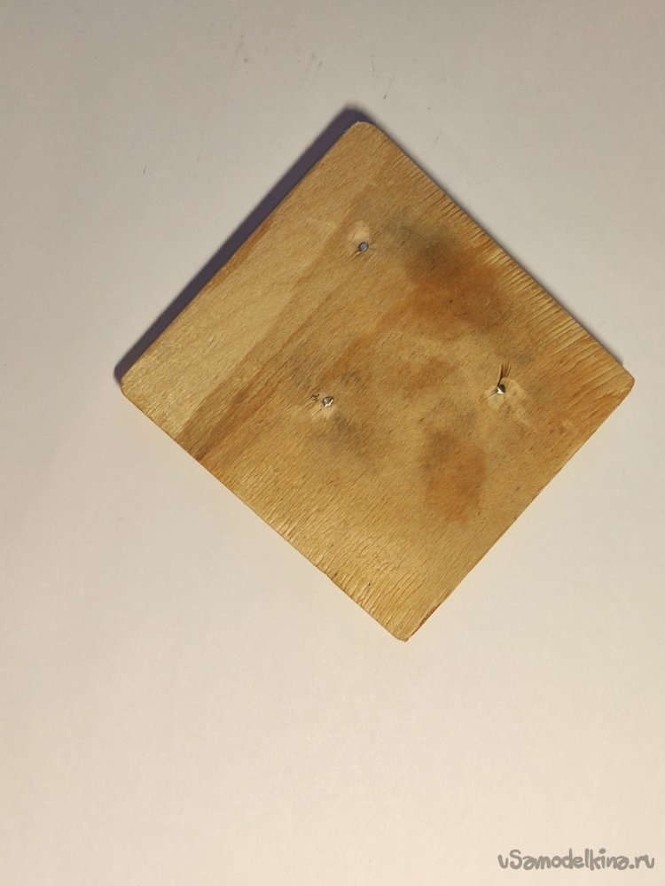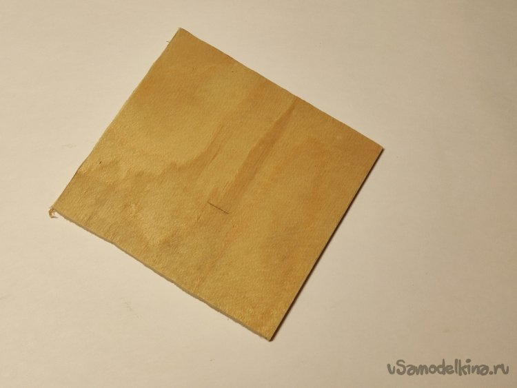 14. изготовим фанерку, на которую будем всё крепить. В своей самоделке я использовал трёх миллиметровую фанеру, так как планировал приклеить эту декорацию в мастерской на стену,