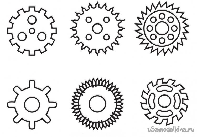 При лазерной резке можно использовать практически любой вариант, но не у многих есть такое оборудование, поэтому будем работать ручным лобзиком, из за чего и выбираем упрощённые стилизованные формы шестерёнок.