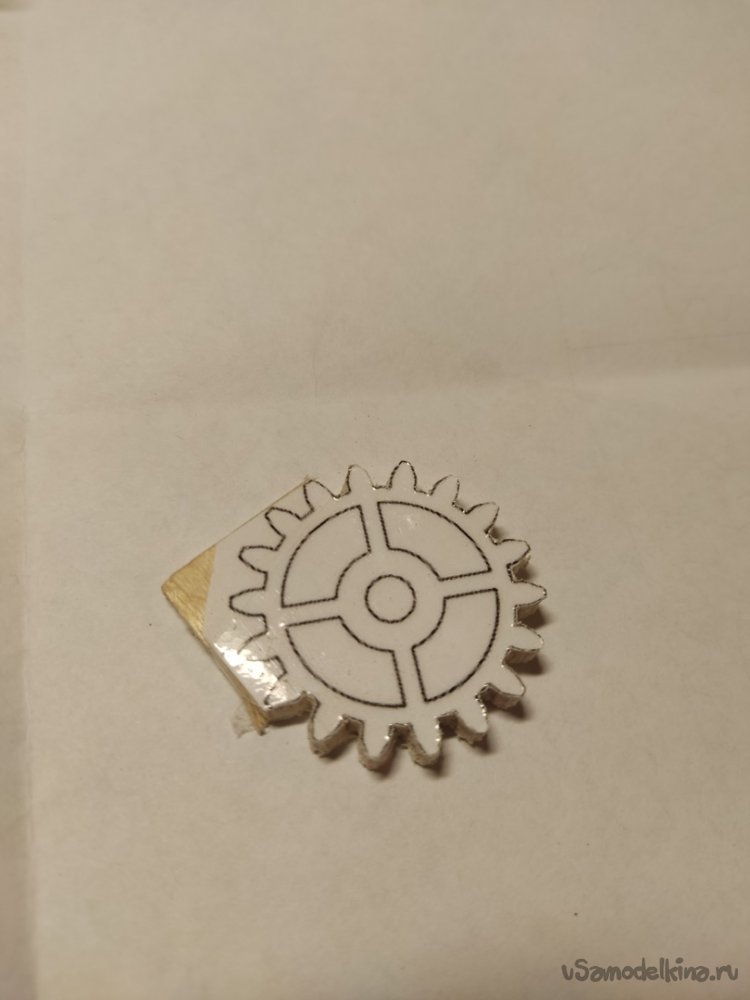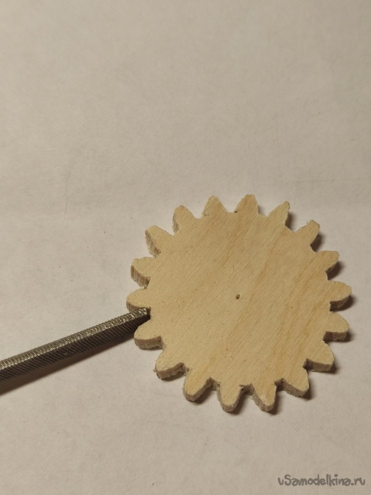 11. Создадим третью и последнюю шестерню, она не имеет внутренних вырезов, поэтому её изготовление не принесёт много хлопот , пилится она быстро и просто. Края зубцов обрабатываются и закругляются .