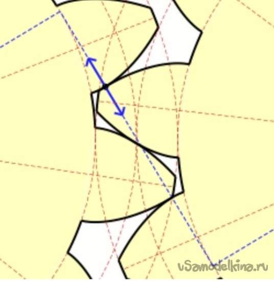 10. 1) Рассмотрим процесс создание большой шестерни, он схож с предыдущей деталью, но всё-таки имеет отличия. В этом случаи, мы сначала выпиливаем внутренние части, а после уже наружные зубцы . Также проходимся по всем зубцам надфилем после выпиливания. Зубцам этой детали также придаём эвольвентную форму. Возможно, некоторые не знакомы с таким термином, поэтому объясню проще и доступнее: чтобы понять взгляните на картинку, линия действия сил отражена на ней, как и сама форма зубцов, к которой мы стремимся.