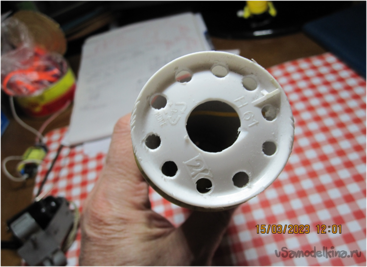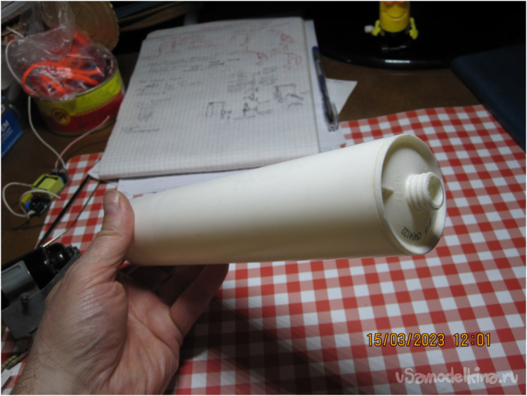 2. Готовим верхнюю часть лампы. Я использовал тубу от силиконового герметика ,была под рукой. Но лучше использовать жестяные банки из под соков , пива. Баллончики от краски и пр