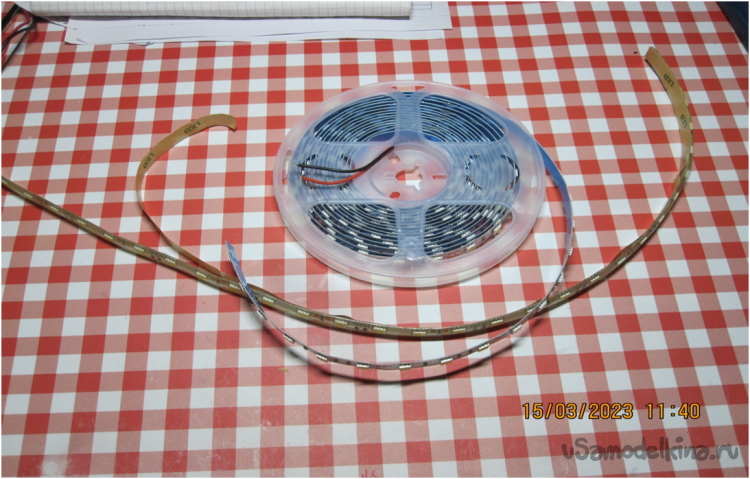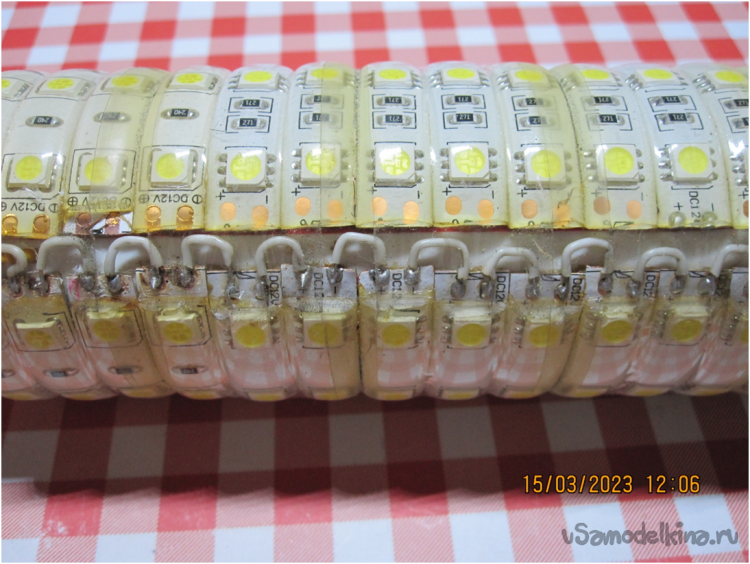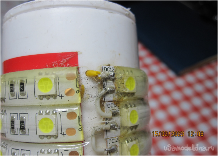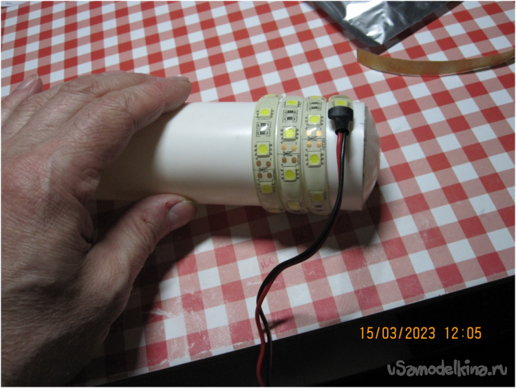 Дальше крепим светодиодную ленту на тубу , предварительно её обезжирив.