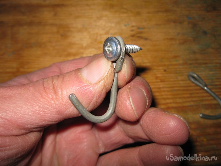 Надо сказать, что по такой технологии можно изготовить крючки разной длины и размера. У меня, например, имеется такой экземпляр, который я использую для подвешивания и хранения шурупов-колец.