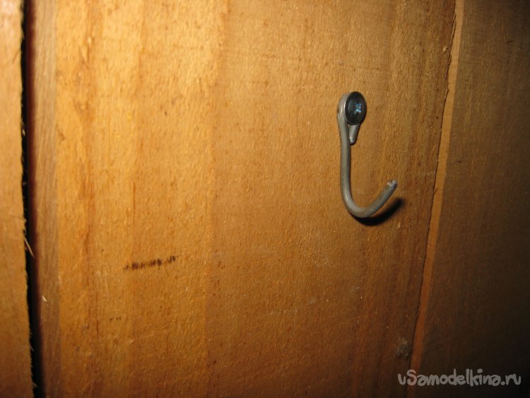И надо сказать, что гвозди вполне могут играть роль крючков, однако, они все-таки не очень удобны. Во-первых, оцинковка на гвоздях постепенно истирается, и они начинают ржаветь. Во-вторых, форма гвоздя не очень удобна, да и шляпка постоянно мешает, поскольку за нее часто зацепляется подвешиваемый предмет.