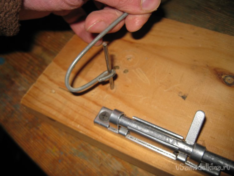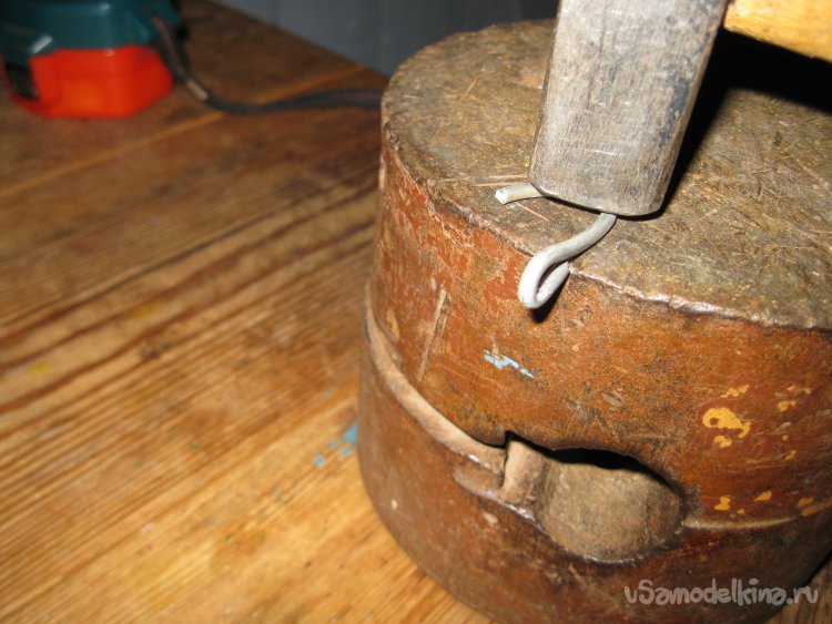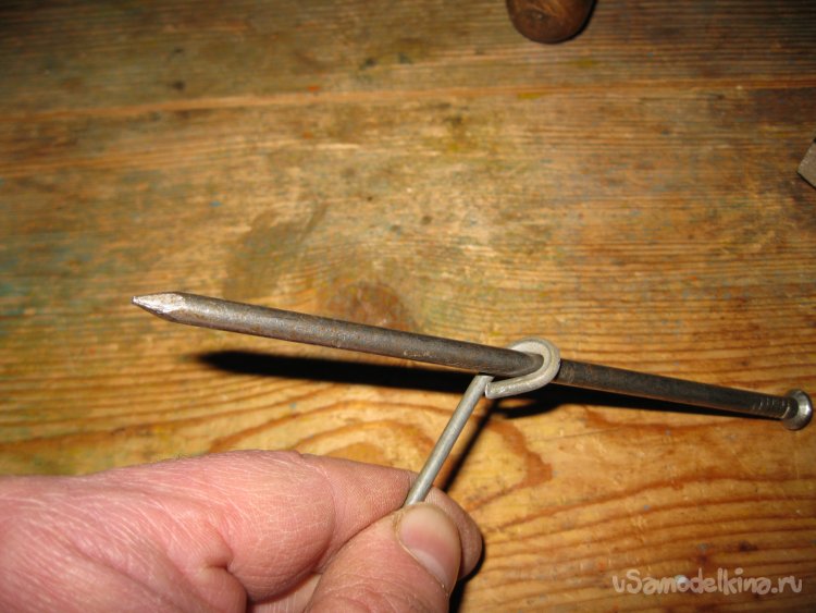 Шаг 3. Теперь надеваем петлю нашей заготовки на гвоздь приспособления, о котором я говорил выше.