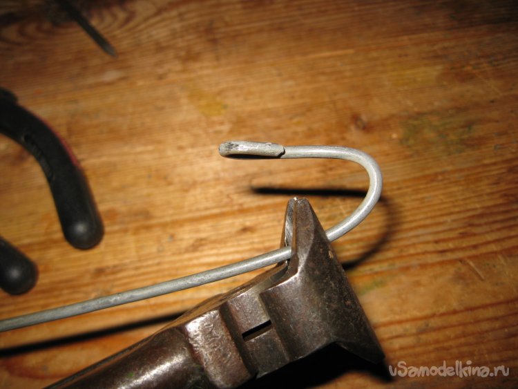 При помощи пассатижей, слегка отгибаю кончик и скругляю его.