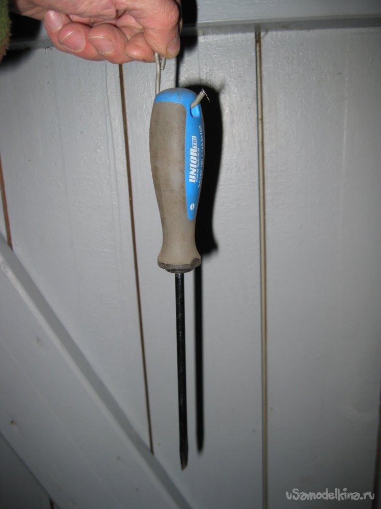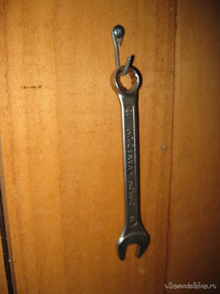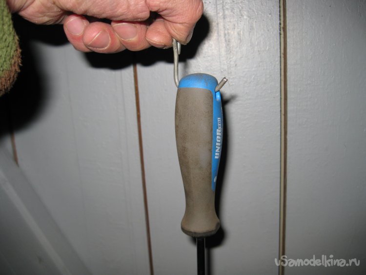 А это еще один вариант подобных крючков, предназначенный для подвешивания инструмента с толстыми рукоятками.