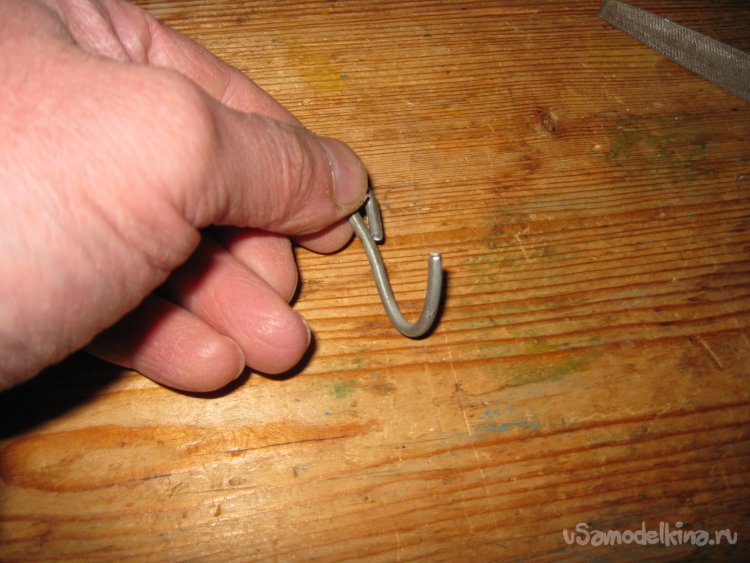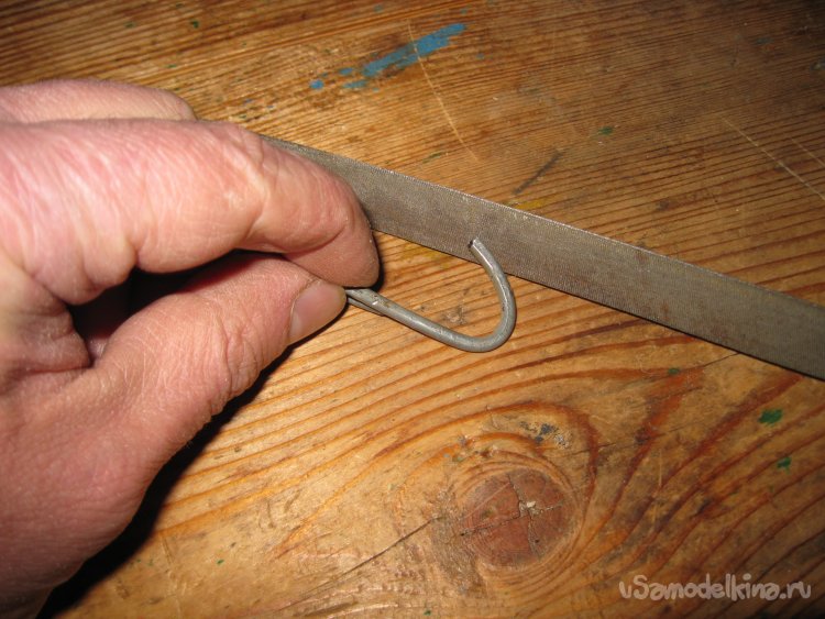 Во-вторых, нужно обработать кончик крючка, слегка скруглив его, чтобы не пораниться об него во время использования.