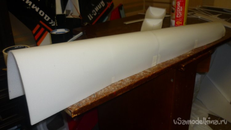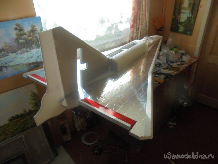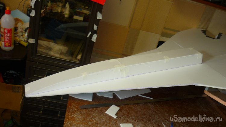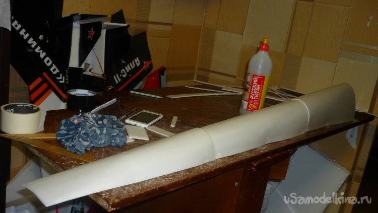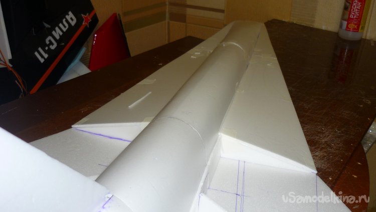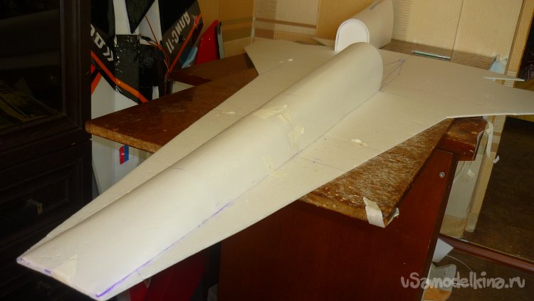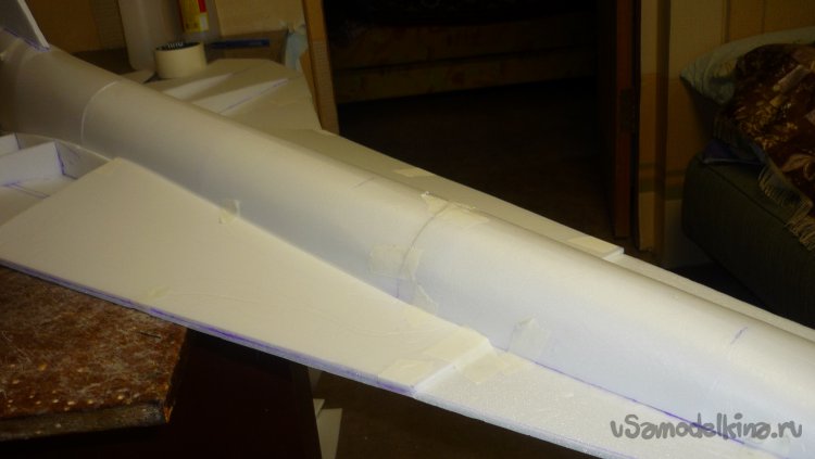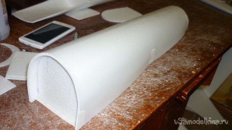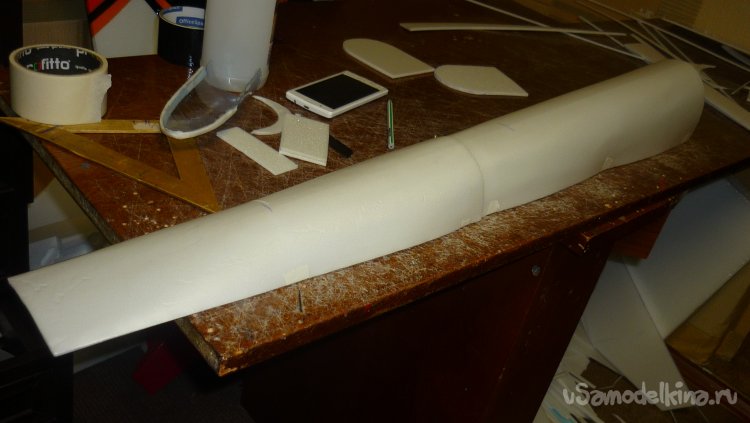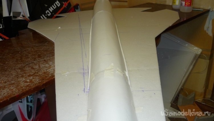 Вырезал заготовку для средней части фюзеляжа и склеил.