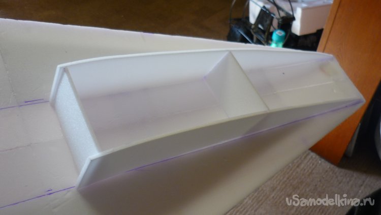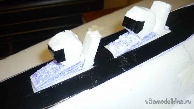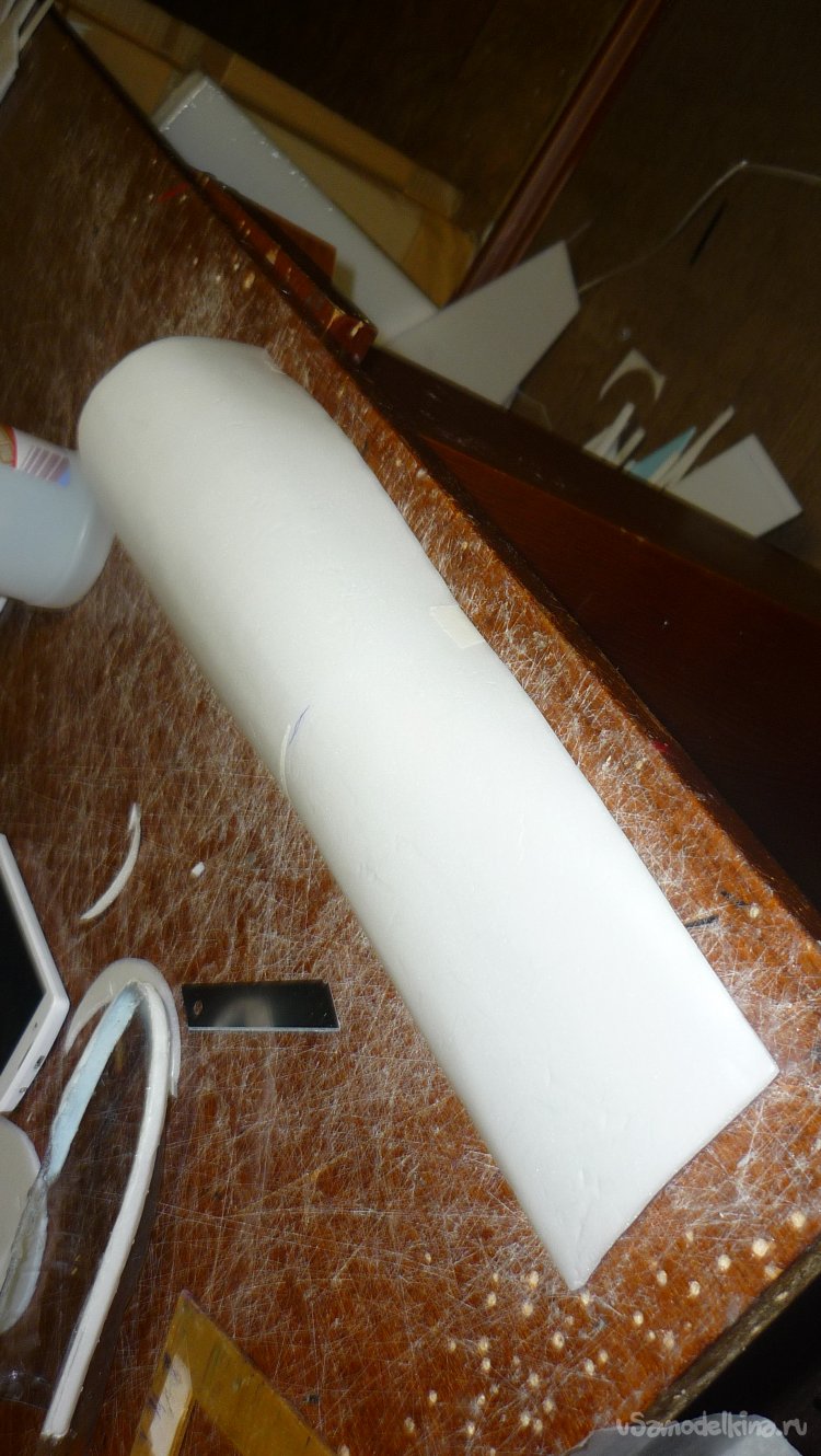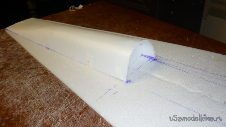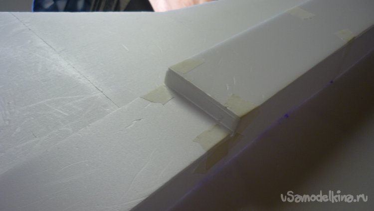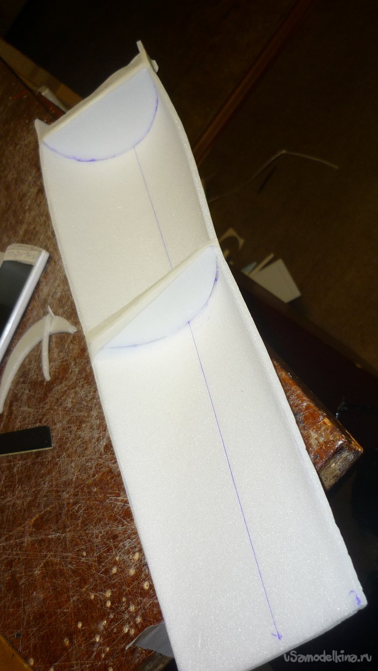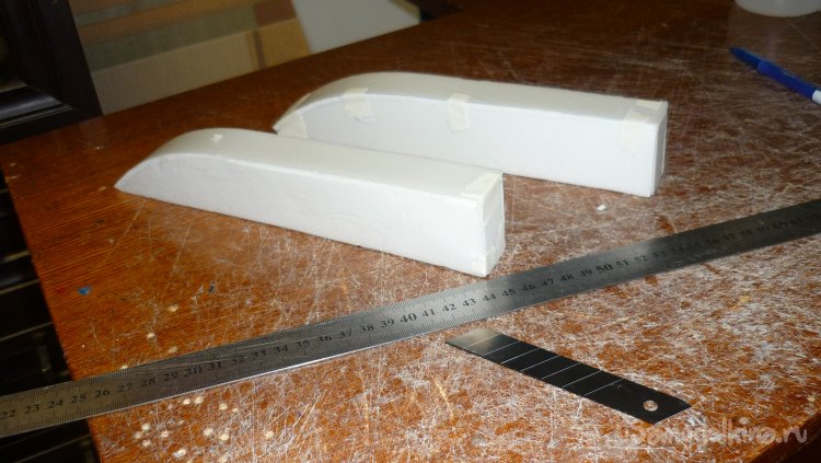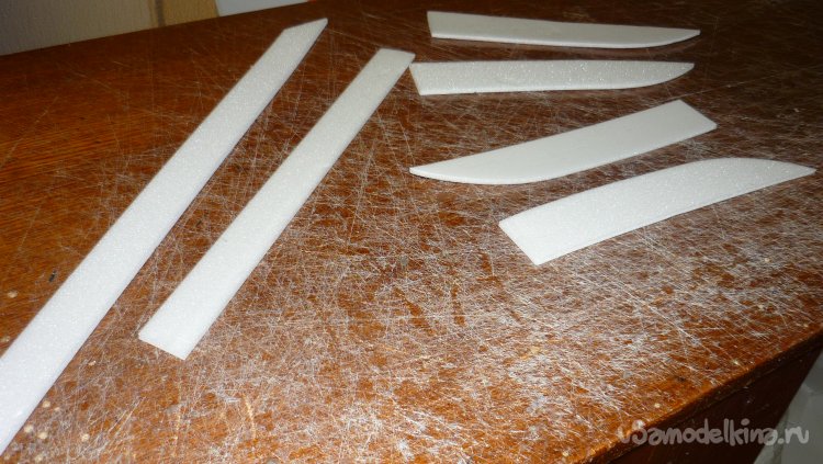 Решил сделать поплавки на концах крыльев. Вырезал заготовки, смонтировал.