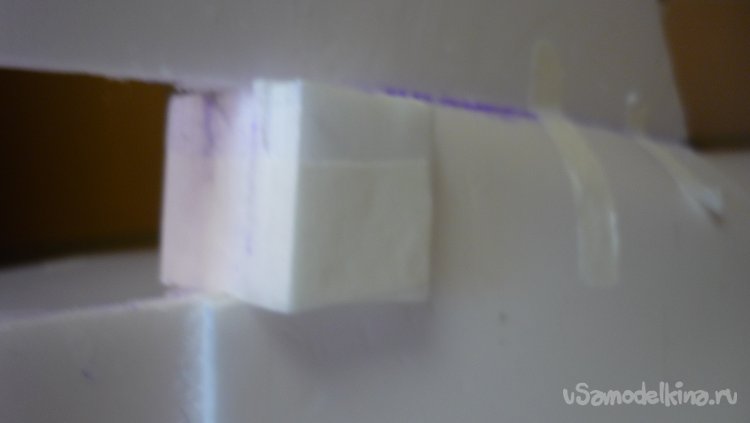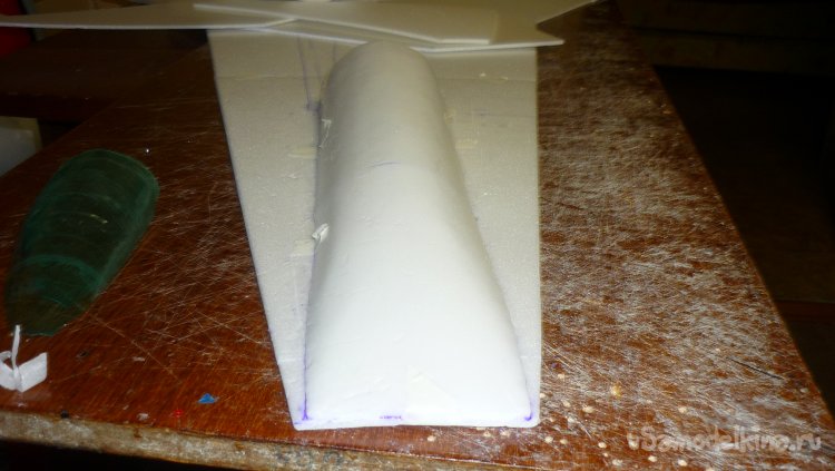 Модель была сделана из листового утеплителя «Пеноплекс» , толщиной 20 мм. и была довольно тяжёлой, более 1500 г.