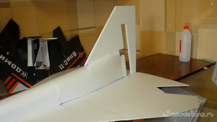 Вырезал заготовку для хвостовой части фюзеляжа и смонтировал.