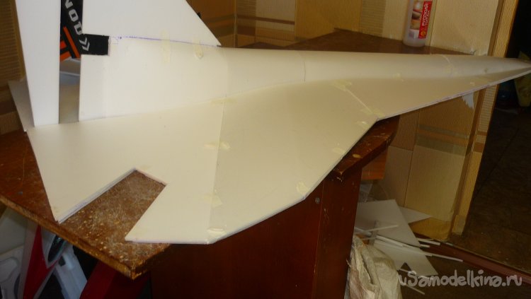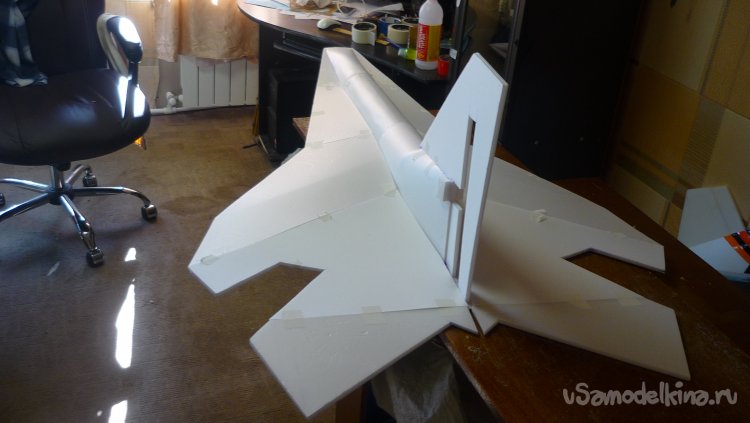 Соединив заготовки, я получил вот такую плоскость, и это не считая элевонов.
