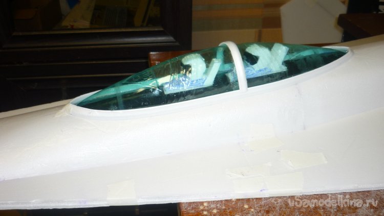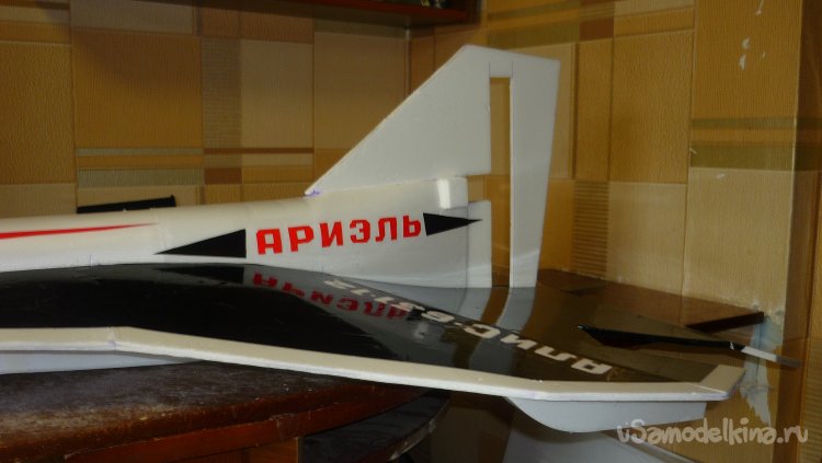 В хвостовой части модели на стыке киля с фюзеляжем, вклеил несколько слоёв потолочки. На этом месте будет установлен мотор.