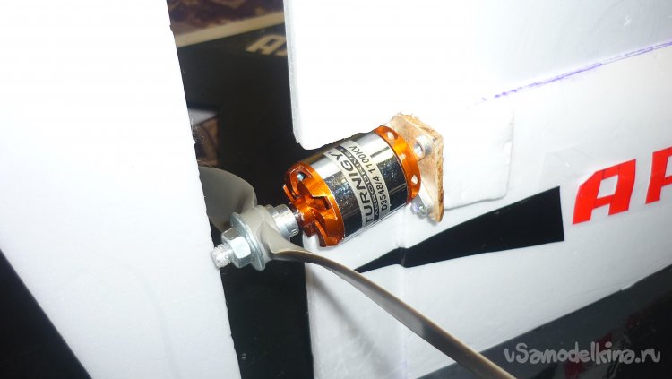 Вклеил кусочек 3 мм. фанеры и установил мотор с винтом.
