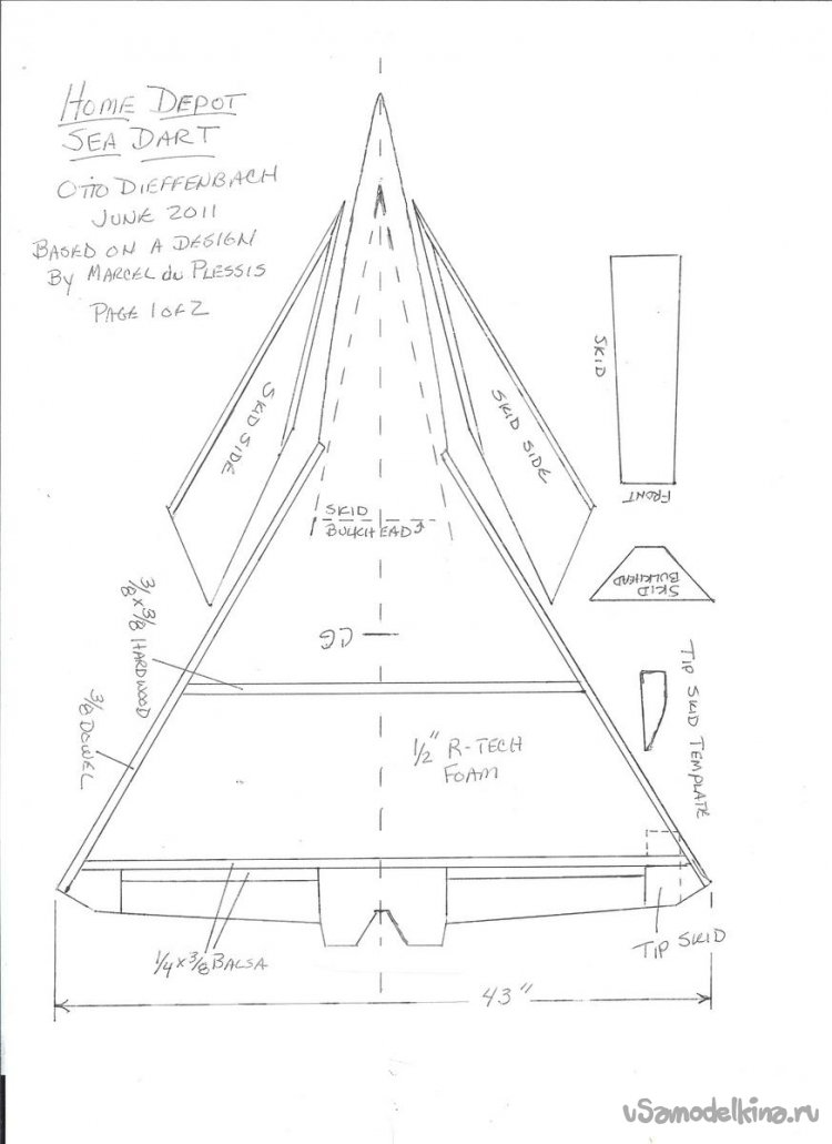 При создании старой модели, за основу были взяты чертежи авиамодели Sea Dart.