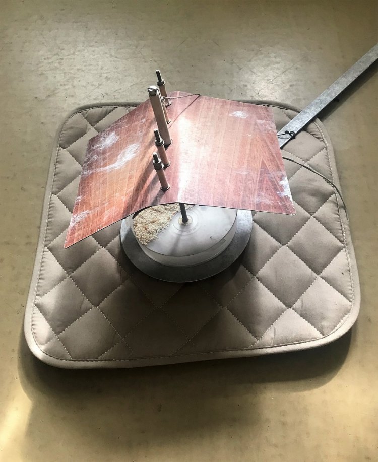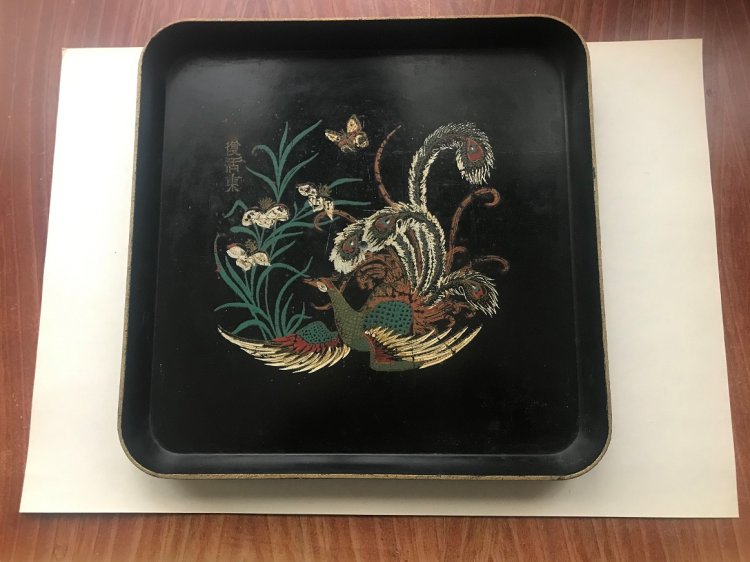 Судя по иероглифам – производства КНР (см. рисунок 03). Это не папье-маше, не дерево, не стекло и не керамика, так как в дне и боковых стенках подноса удалось осторожно просверлить отверстия. Поднос может быть практически из любого материала: пластмассы, гетинакса. Скорее всего, не подойдут стекло и стекловолокно. Важно лишь чтобы размеры подноса и сервировочной салфетки сильно не нарушали пропорций ширины и высоты кормушки в сборе.