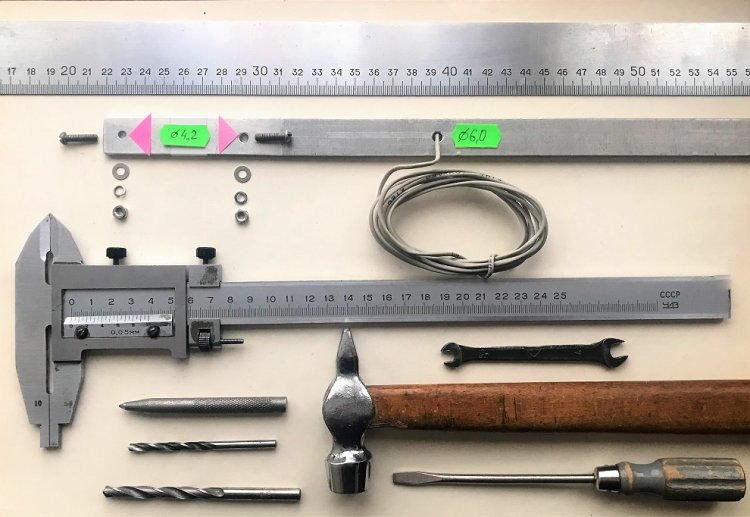 2). Полоска дюралюминия 800 х 20 х 4 мм. – для держателя кормушки.